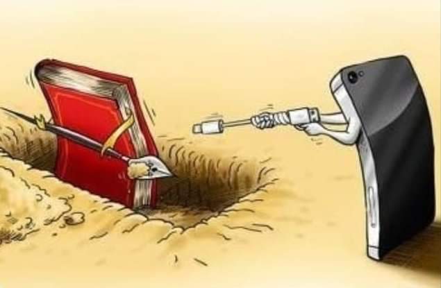 कलम और कागज़ की जगह मोबाइल का इस्तेमाल बढ़ने लगा और उसके साथ ही बढ़ने लगी कलम और किताबों की कब्र की गहराई।