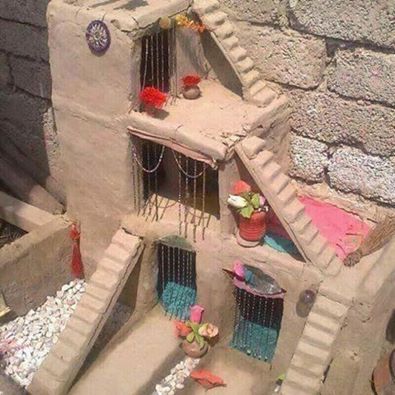 यह थी खुशबु जो मिट्टी का घरौंदा बनाने में व्यस्त थी।मिट्टी का घरौंदा जिसका छत कूट से बना था और ऊपर जाने के लिए सीढ़ी भी बनायीं गयी थी।