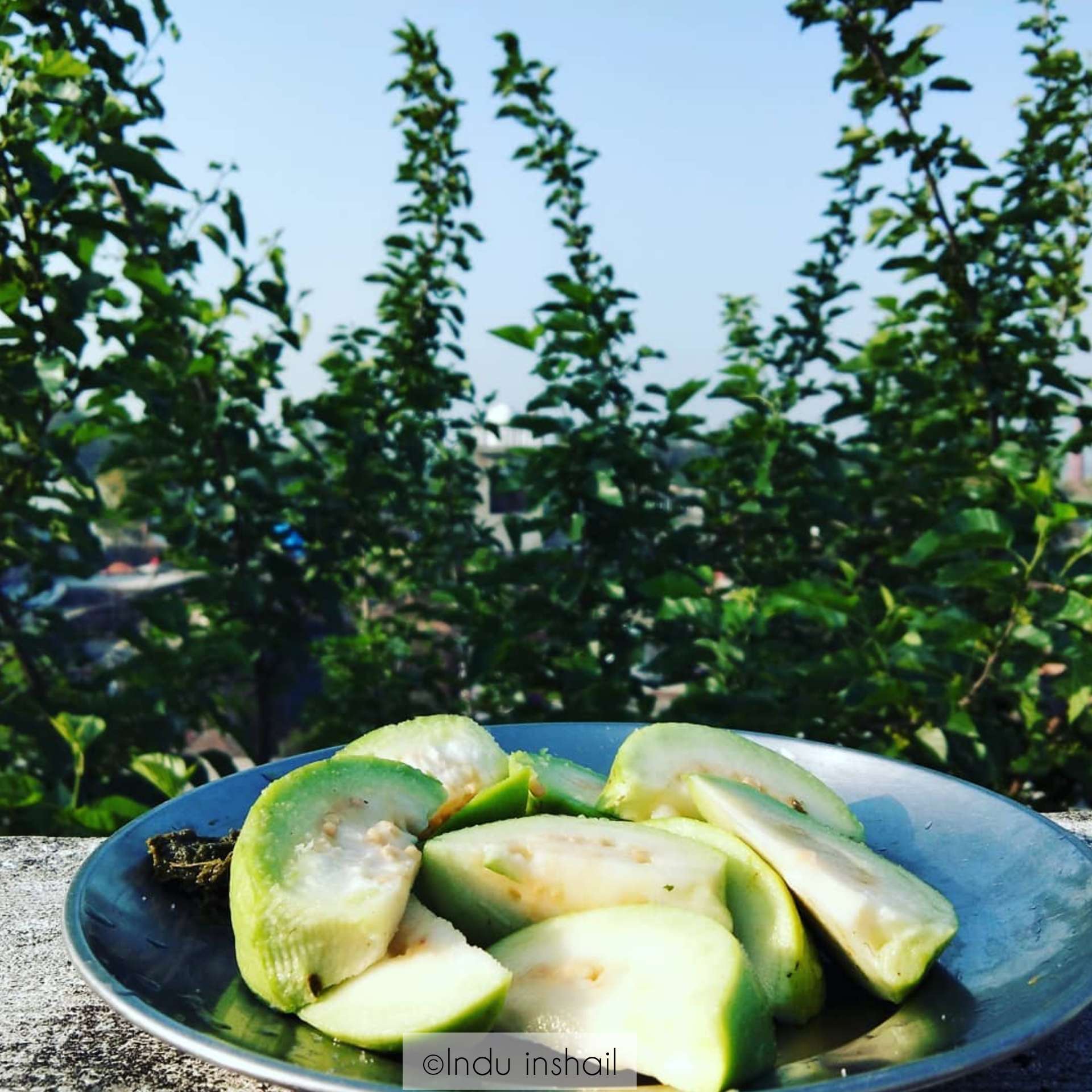जी हाँ। ऐसा नजारा आपको बस गांव में ही मिल सकता है। यह मजा और कई गुना तब बढ़ जाता है, जब मैं अपने ही घर में लगे अमरूद के पेड़ से अमरूद तोड़ के, खेत से आई हुई हरी धनिया की चटनी के साथ खुले आसमान के नीचे, इसका लुत्फ उठा के खाऊं।