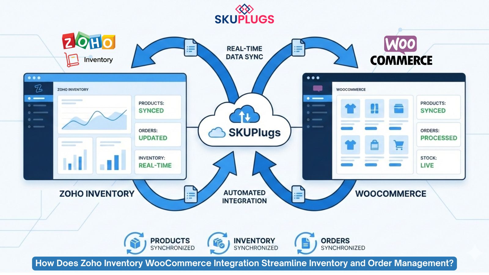 Automate inventory and order sync between Zoho Inventory and WooCommerce using SKUPlugs for accurate stock and faster fulfillment.