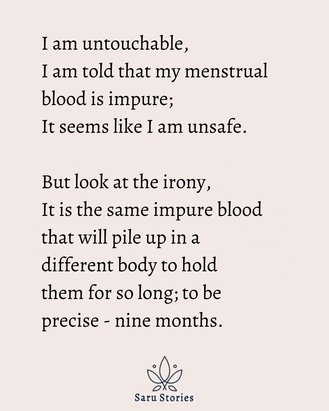 Menstruation is nothing to be ashamed of, the more we talk about it, the more we know, less it's a taboo, engage everyone in the conversation and normalize the subject in your surroundings. I might have gone through a lot of rough patches during the initial stages of my menstruation. But, I choose to take a stand on how to educate people around me and break this taboo.